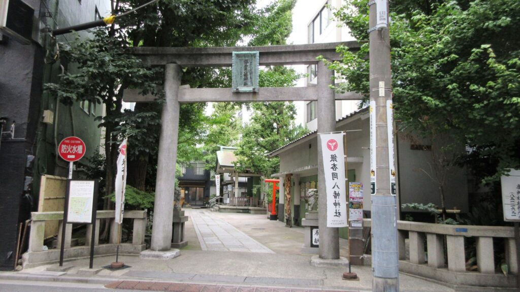 小さな境内ながら鳥居、細長い参道、境内社が残り、今も浅草橋の氏神として地域の安全と商売繁盛を見守っています。