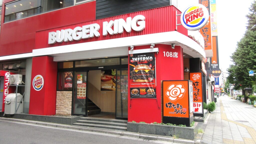 浅草橋駅前交差点を過ぎると、左手に赤い建物「BURGER KING」が見えてきますので、そこを左折します。