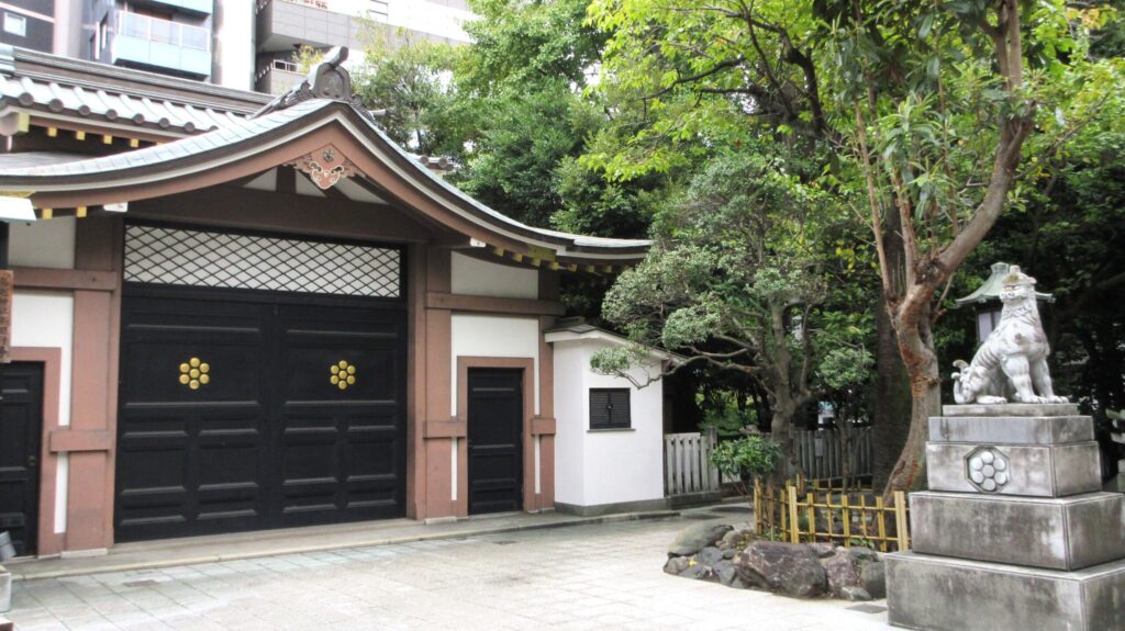 江戸時代には広い社地を持ちましたが、幕府の蔵や大名屋敷の整備で縮小し、現在の規模になりました。