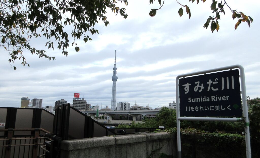 橋の南側からの眺めは、スカイツリーと隅田川をとらえる絶景ポイントです。