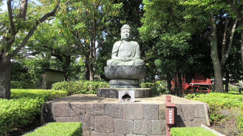 現在の堂宇は鉄筋コンクリート造で、関東大震災や戦災を経て昭和・平成期に再建されたものです。