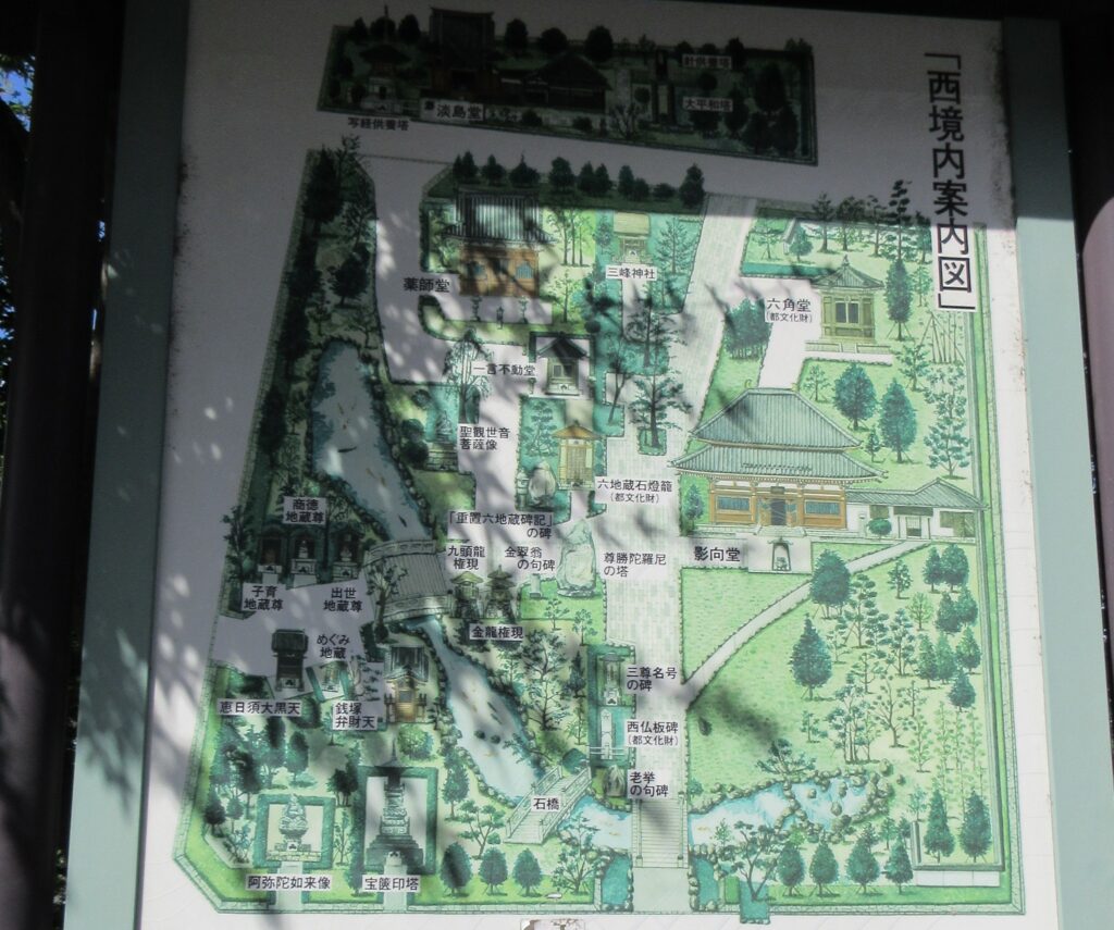 西の境内には緑豊かな庭園に、多くの見どころが点在しています。ゆっくりお散歩しながら見て回るには程よい広さ。